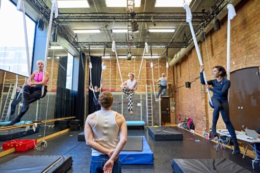 The company spent several weeks developing the aerial sequences in the Creation Studio, making full use of the specialist rigging infrastructure and height clearance the space offers. This enabled them to safely rehearse complex aerial choreography and transitions, before taking the work to the Bridge Theatre stage.